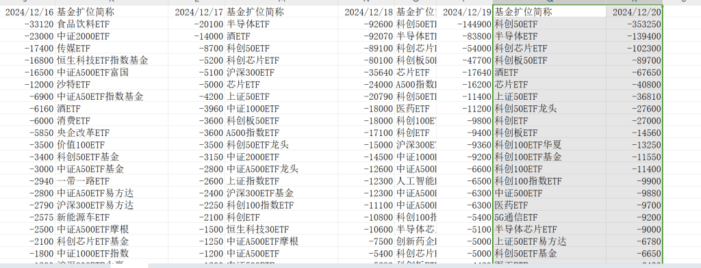 周五的ETF数据和本周的ETF数据放上来,各位看官自行判断。我从这个数据里读不出确定性,只能读出可能性。